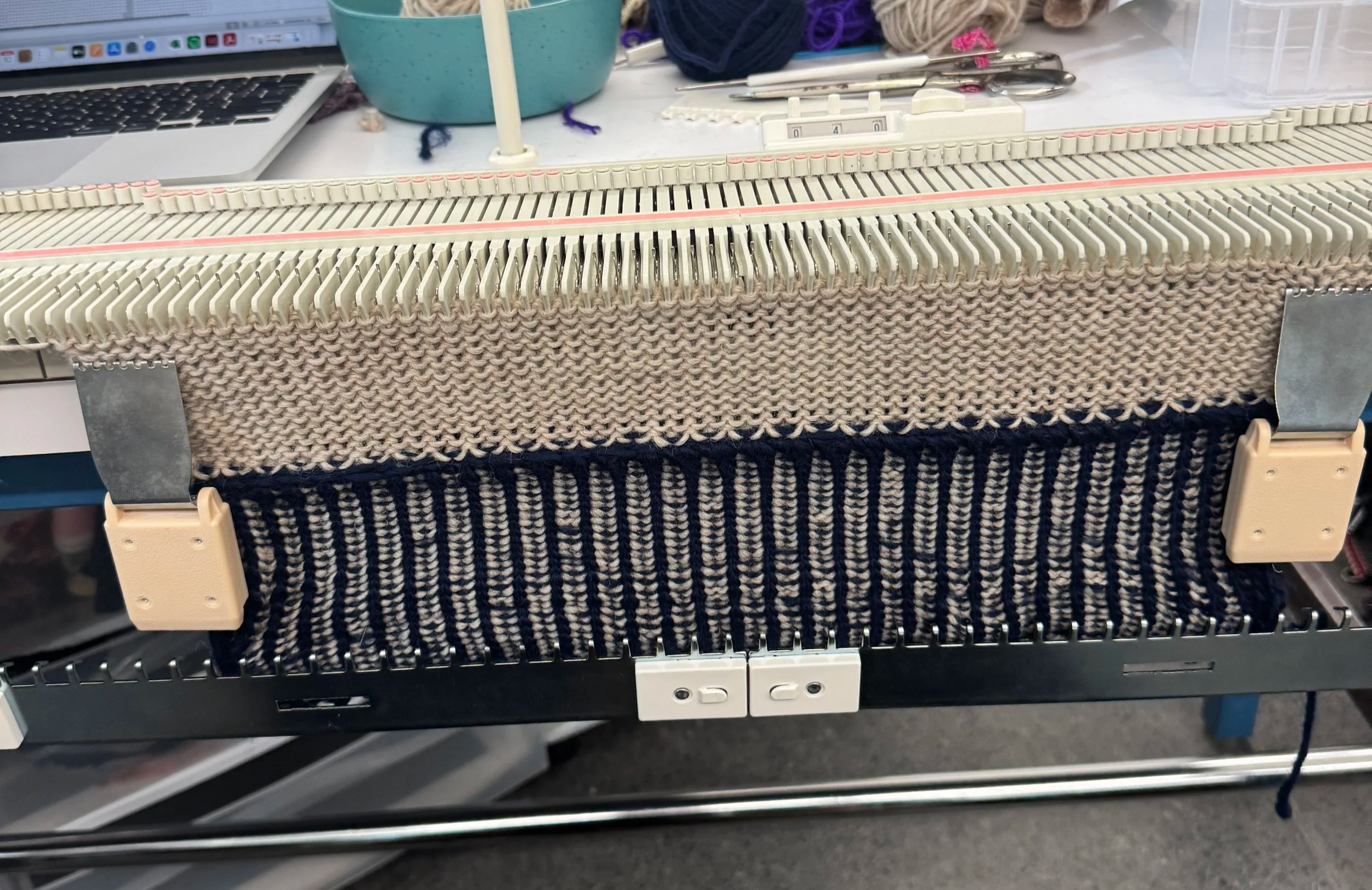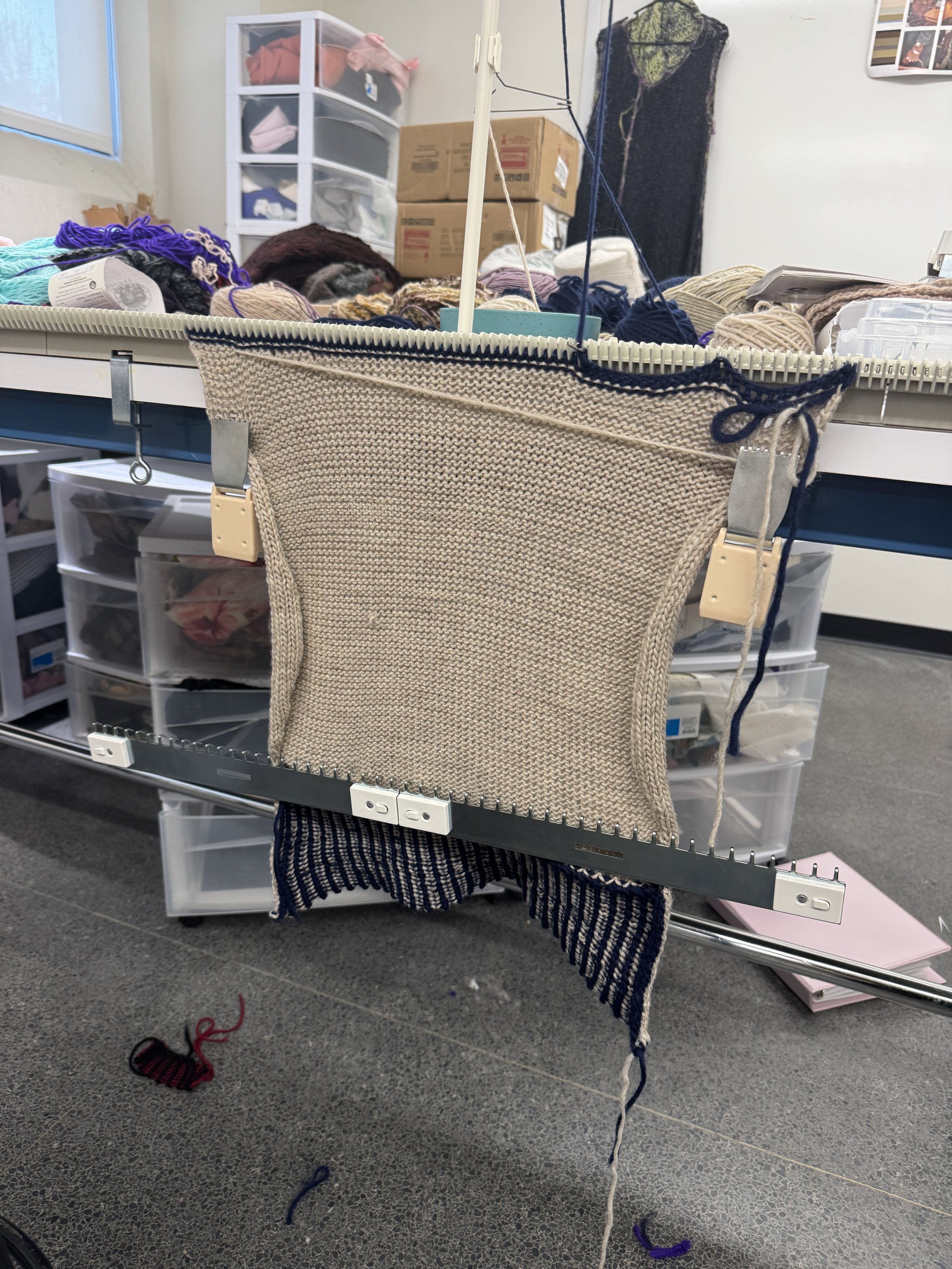 This amazing class has taught me all of the foundational knowledge of hand knitting, flatbed knitting, and making knitting patterns on Excel. It has been one of the most enjoyable experiences I’ve had in my academic career and has sparked a love for knitwear design that I aspire to pursue in the future.