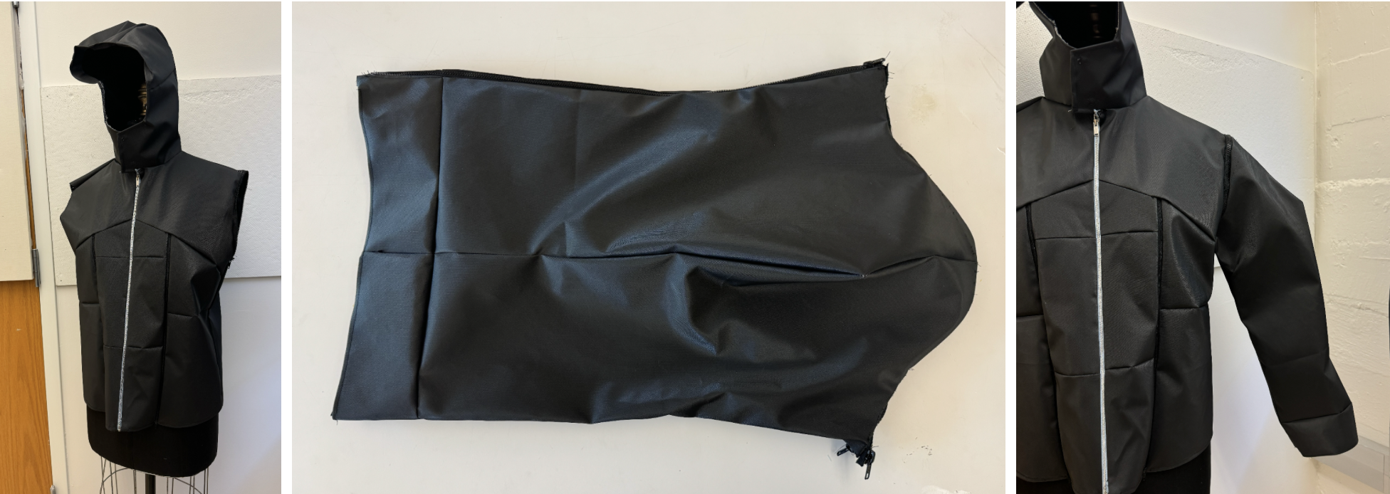 As we partake in outdoor activities, our body adapts to the elements. This piece aims to adapt alongside the body as it maintains equilibrium, with several transformative aspects that allow it to convert to various forms. Between a jacket, vest, and bag, this garment’s various configurations seamlessly accomodate to the wearer’s change in body temperature.