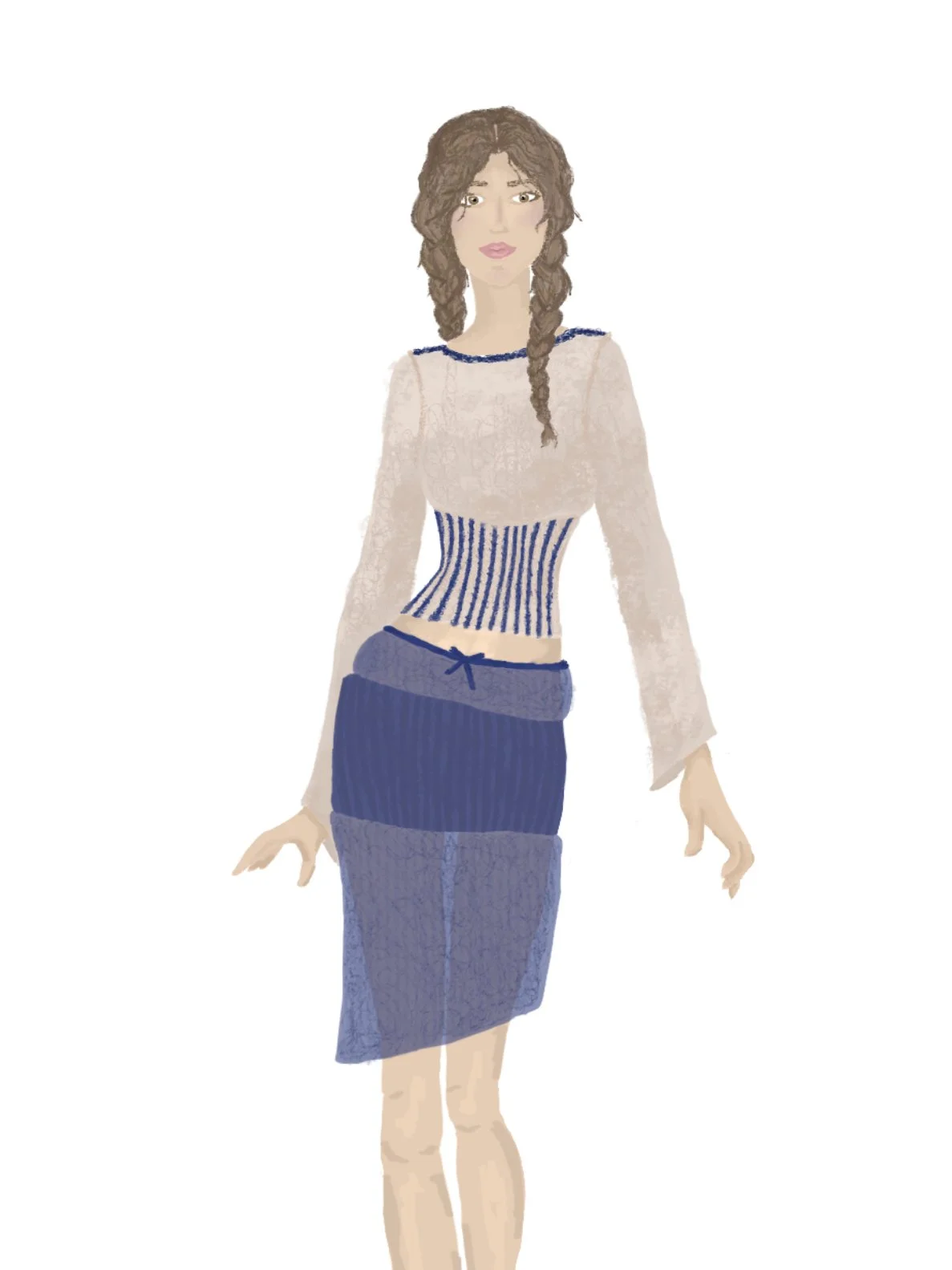 Nina Rosell is a Washington University Fashion Design BFA candidate whose work bridges conceptual storytelling with an instinctive material sensitivity. With a love for knitwear and a dedication to sustainable practice, she uses form, fiber, and texture to build garments that feel like rediscovered heirlooms—intimate, symbolic, and rooted in a kind of crafted nostalgia. Her approach treats clothing as a form of expression of mood and memory.